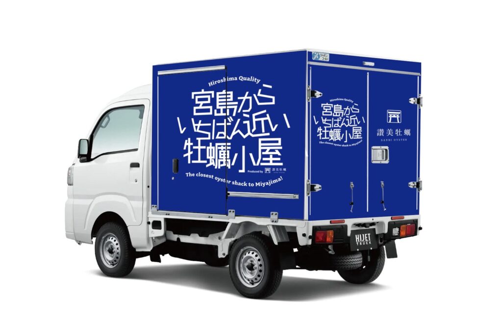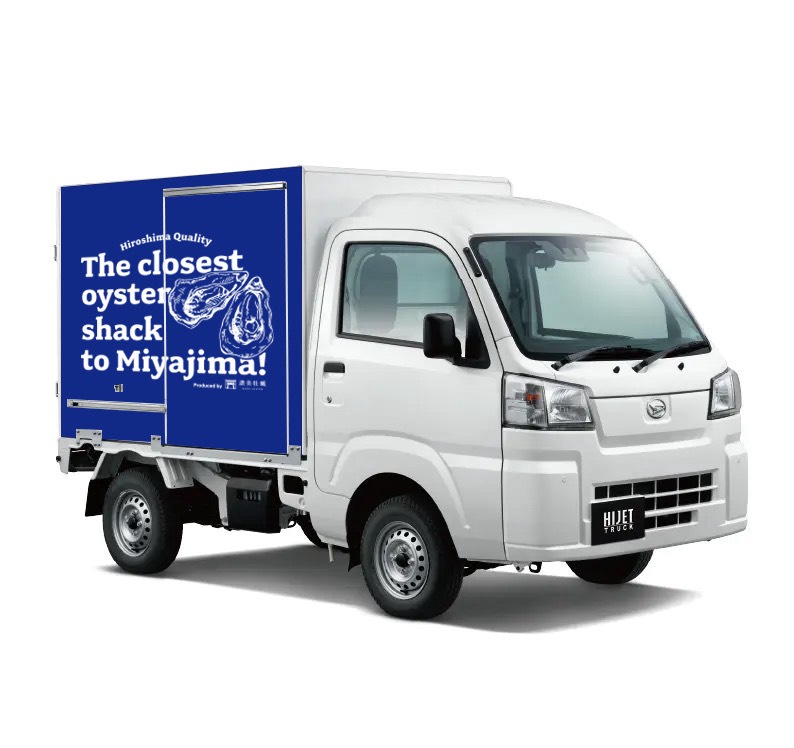 オープンに先がけ、讃美牡蠣では「宮島からいちばん近い牡蠣小屋」のロゴをあしらったトラックの走行を予定しています。