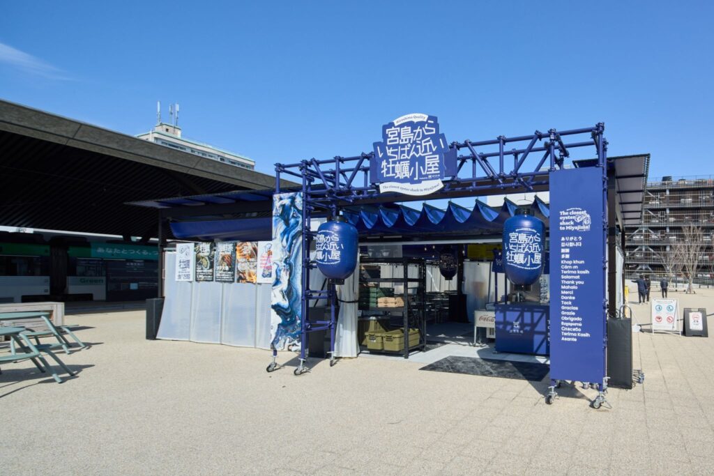 広島宮島牡蠣を100%で楽しめるのが、広電宮島口駅徒歩5秒、宮島口しゃもじ広場横にある「宮島からいちばん近い牡蠣小屋」。